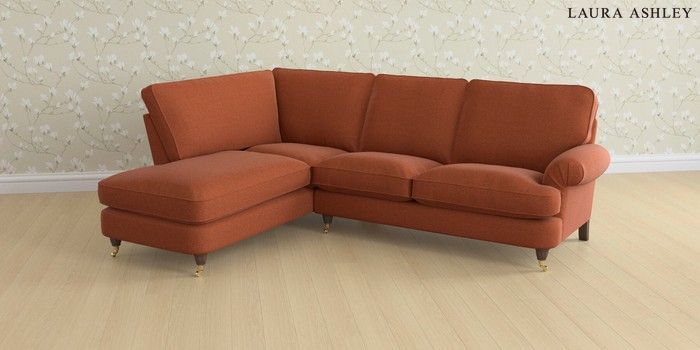 6.12.1 Buy Beaumaris by Laura Ashley Medium Sofa Chaise - Left Hand Harley Terracotta Orange Low Brass Castor - Chestnut from the Next UK online shop Click here to use our accessible website