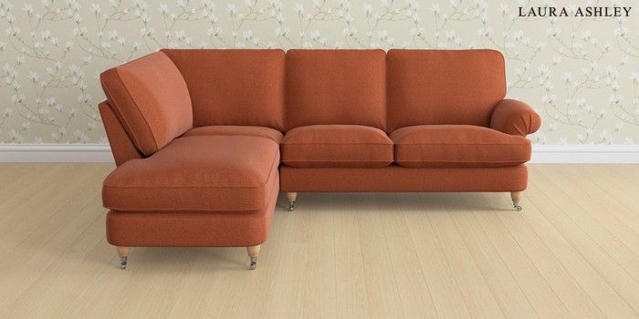 6.12.1 Buy Beaumaris by Laura Ashley Medium Sofa Chaise - Left Hand Harley Terracotta Orange Low Chrome Castor - Light Oak from the Next UK online shop Click here to use our accessible website