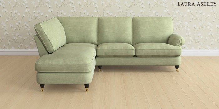6.12.1 Buy Beaumaris by Laura Ashley Medium Sofa Chaise - Left Hand Kinsham Hedgerow Green Low Brass Castor - Black from the Next UK online shop Click here to use our accessible website