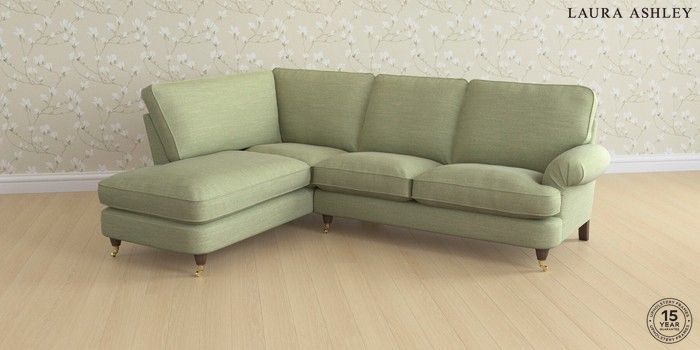6.12.1 Buy Beaumaris by Laura Ashley Medium Sofa Chaise - Left Hand Kinsham Hedgerow Green Low Brass Castor - Chestnut from the Next UK online shop Click here to use our accessible website