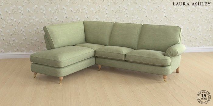 6.12.1 Buy Beaumaris by Laura Ashley Medium Sofa Chaise - Left Hand Kinsham Hedgerow Green Low Brass Castor - Light Oak from the Next UK online shop Click here to use our accessible website