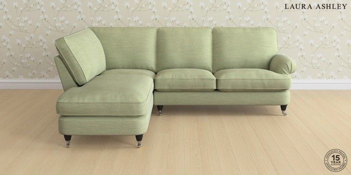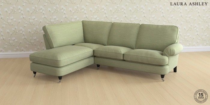6.12.1 Buy Beaumaris by Laura Ashley Medium Sofa Chaise - Left Hand Kinsham Hedgerow Green Low Chrome Castor - Black from the Next UK online shop Click here to use our accessible website