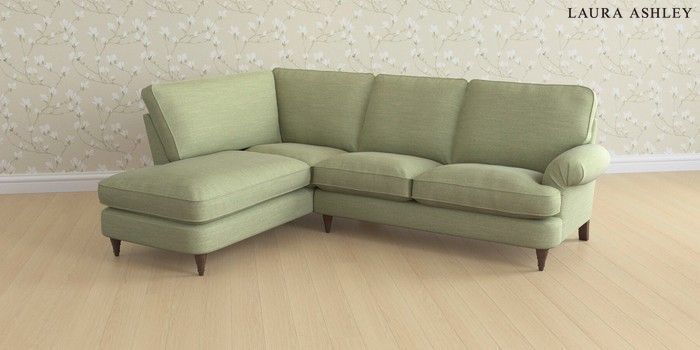6.12.1 Buy Beaumaris by Laura Ashley Medium Sofa Chaise - Left Hand Kinsham Hedgerow Green Low Turned - Chestnut from the Next UK online shop Click here to use our accessible website