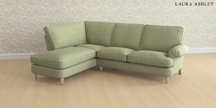 6.12.1 Buy Beaumaris by Laura Ashley Medium Sofa Chaise - Left Hand Kinsham Hedgerow Green Low Turned - Light Oak from the Next UK online shop Click here to use our accessible website
