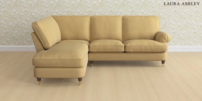 6.12.1 Buy Beaumaris by Laura Ashley Medium Sofa Chaise - Left Hand Kinsham Ochre Yellow Low Brass Castor - Chestnut from the Next UK online shop Click here to use our accessible website
