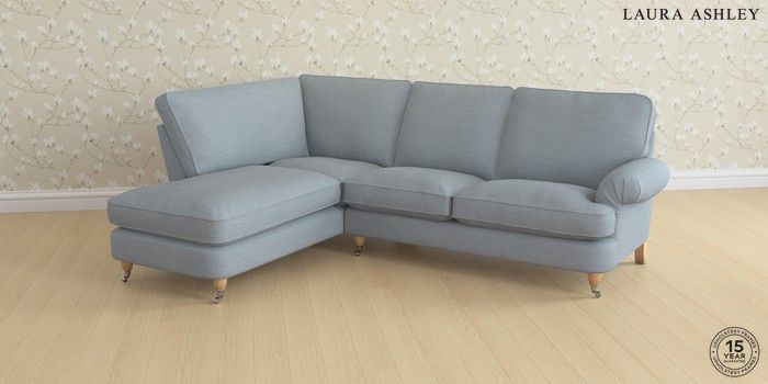 6.12.1 Buy Beaumaris by Laura Ashley Medium Sofa Chaise - Left Hand Kinsham Seaspray Blue Low Chrome Castor - Light Oak from the Next UK online shop Click here to use our accessible website