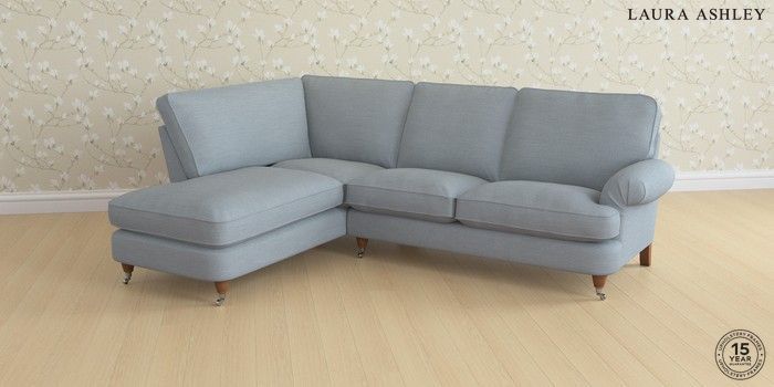 6.12.1 Buy Beaumaris by Laura Ashley Medium Sofa Chaise - Left Hand Kinsham Seaspray Blue Low Chrome Castor - Teak from the Next UK online shop Click here to use our accessible website