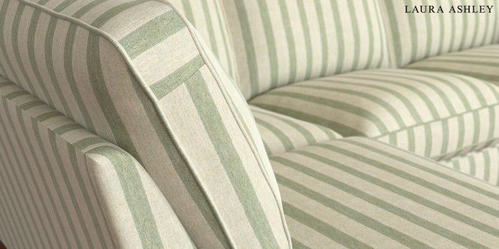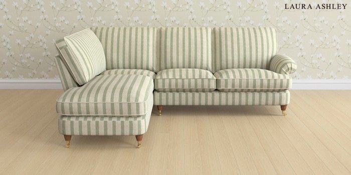 6.12.1 Buy Beaumaris by Laura Ashley Medium Sofa Chaise - Left Hand Kinsham Stripe Hedgerow Green Low Brass Castor - Teak from the Next UK online shop Click here to use our accessible website
