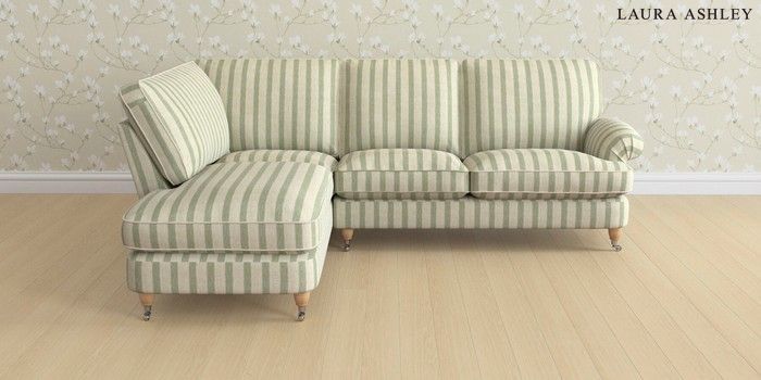 6.12.1 Buy Beaumaris by Laura Ashley Medium Sofa Chaise - Left Hand Kinsham Stripe Hedgerow Green Low Chrome Castor - Light Oak from the Next UK online shop Click here to use our accessible website