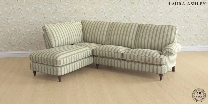 6.12.1 Buy Beaumaris by Laura Ashley Medium Sofa Chaise - Left Hand Kinsham Stripe Hedgerow Green Low Turned - Chestnut from the Next UK online shop Click here to use our accessible website