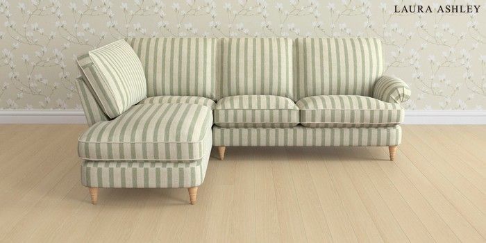 6.12.1 Buy Beaumaris by Laura Ashley Medium Sofa Chaise - Left Hand Kinsham Stripe Hedgerow Green Low Turned - Light Oak from the Next UK online shop Click here to use our accessible website