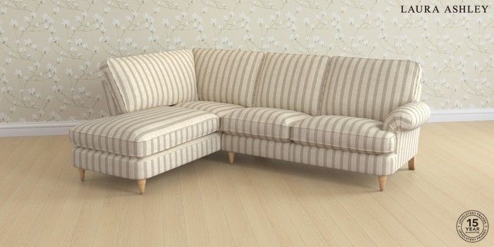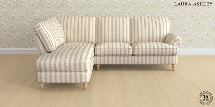 6.12.1 Buy Beaumaris by Laura Ashley Medium Sofa Chaise - Left Hand Kinsham Stripe Natural Low Turned - Light Oak from the Next UK online shop Click here to use our accessible website