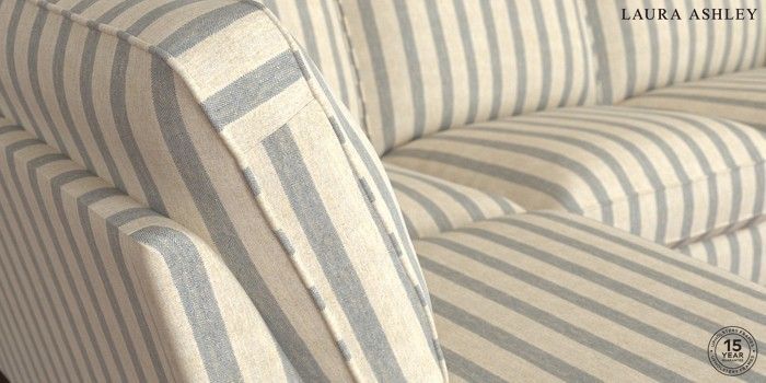 6.12.1 Buy Beaumaris by Laura Ashley Medium Sofa Chaise - Left Hand Kinsham Stripe Seaspray Blue Low Brass Castor - Chestnut from the Next UK online shop Click here to use our accessible website