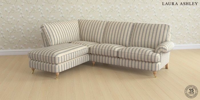 6.12.1 Buy Beaumaris by Laura Ashley Medium Sofa Chaise - Left Hand Kinsham Stripe Seaspray Blue Low Brass Castor - Light Oak from the Next UK online shop Click here to use our accessible website