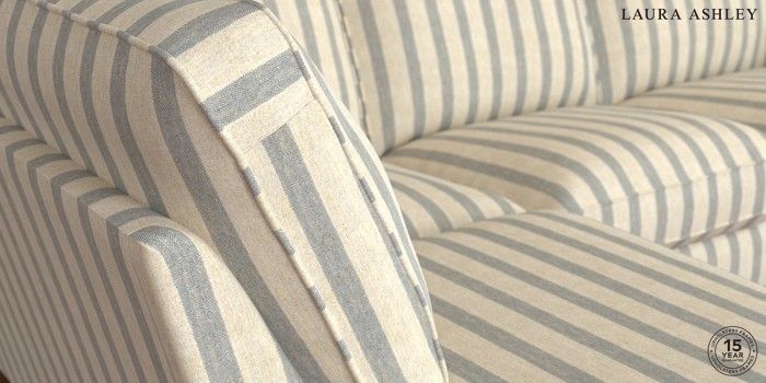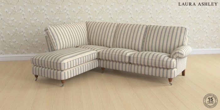 6.12.1 Buy Beaumaris by Laura Ashley Medium Sofa Chaise - Left Hand Kinsham Stripe Seaspray Blue Low Chrome Castor - Teak from the Next UK online shop Click here to use our accessible website