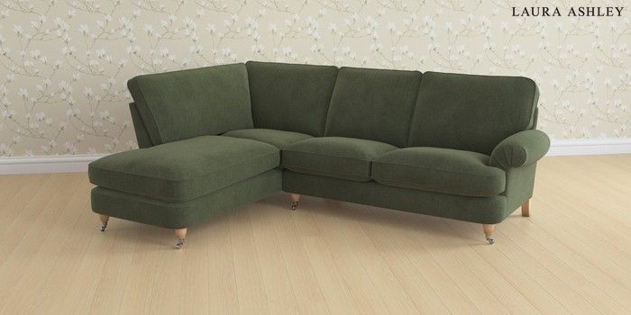 6.12.13 Buy Beaumaris by Laura Ashley Medium Sofa Chaise - Left Hand Lundar Chenille Ivy Green Low Chrome Castor - Light Oak from the Next UK online shop Click here to use our accessible website