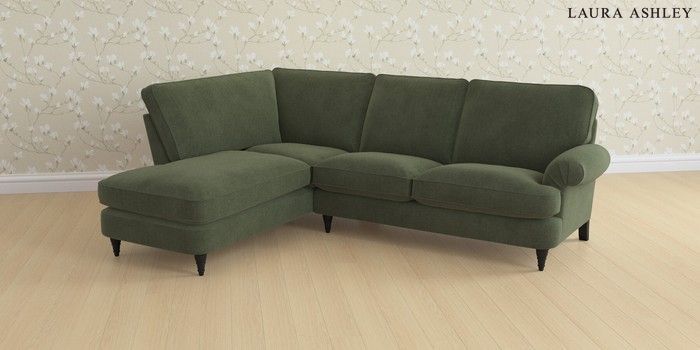 6.12.13 Buy Beaumaris by Laura Ashley Medium Sofa Chaise - Left Hand Lundar Chenille Ivy Green Low Turned - Black from the Next UK online shop Click here to use our accessible website