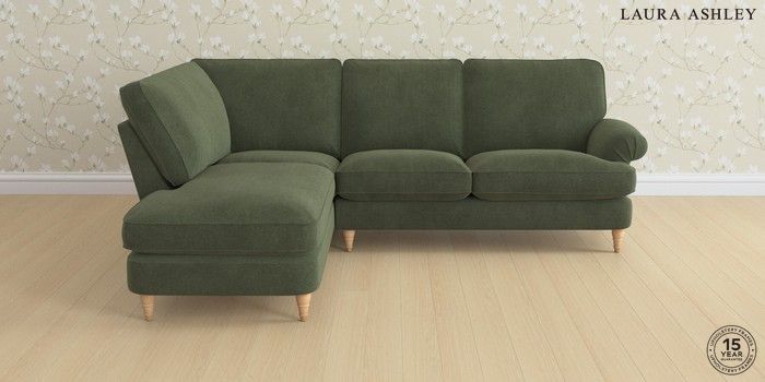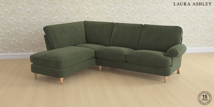 6.12.13 Buy Beaumaris by Laura Ashley Medium Sofa Chaise - Left Hand Lundar Chenille Ivy Green Low Turned - Light Oak from the Next UK online shop Click here to use our accessible website