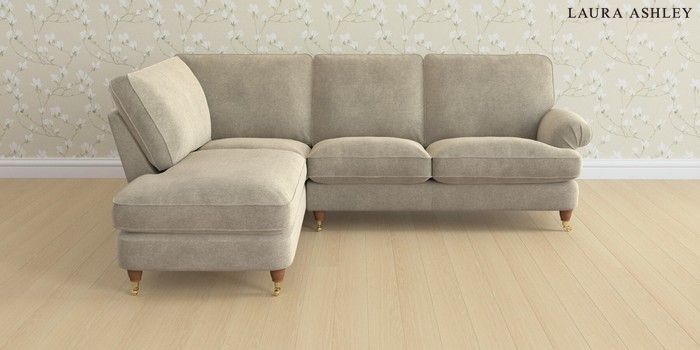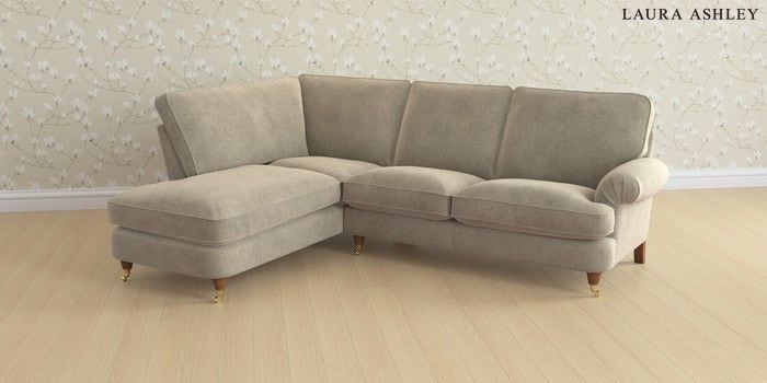 6.12.1 Buy Beaumaris by Laura Ashley Medium Sofa Chaise - Left Hand Lundar Chenille Truffle Natural Low Brass Castor - Teak from the Next UK online shop Click here to use our accessible website