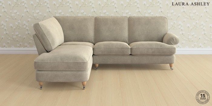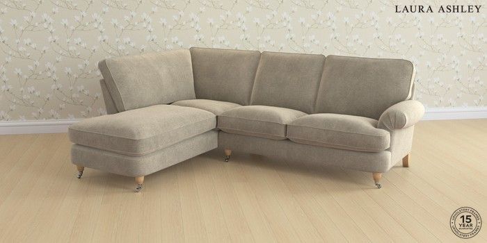 6.12.13 Buy Beaumaris by Laura Ashley Medium Sofa Chaise - Left Hand Lundar Chenille Truffle Natural Low Chrome Castor - Light Oak from the Next UK online shop Click here to use our accessible website