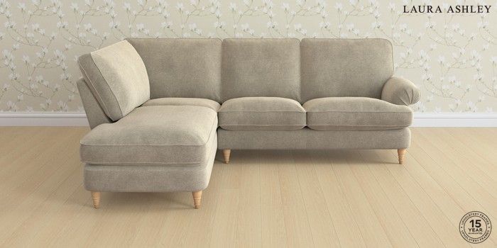 6.12.13 Buy Beaumaris by Laura Ashley Medium Sofa Chaise - Left Hand Lundar Chenille Truffle Natural Low Turned - Light Oak from the Next UK online shop Click here to use our accessible website