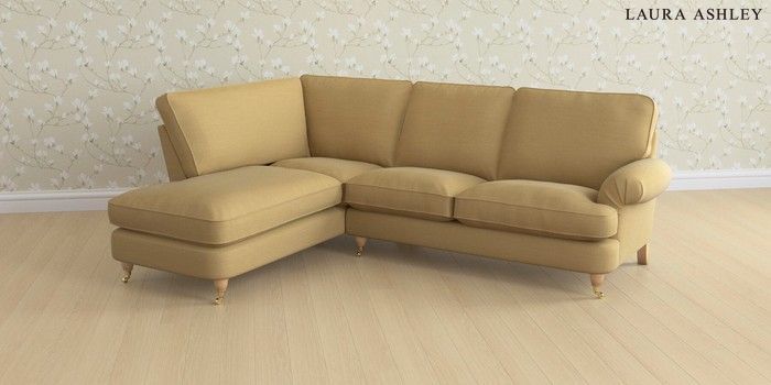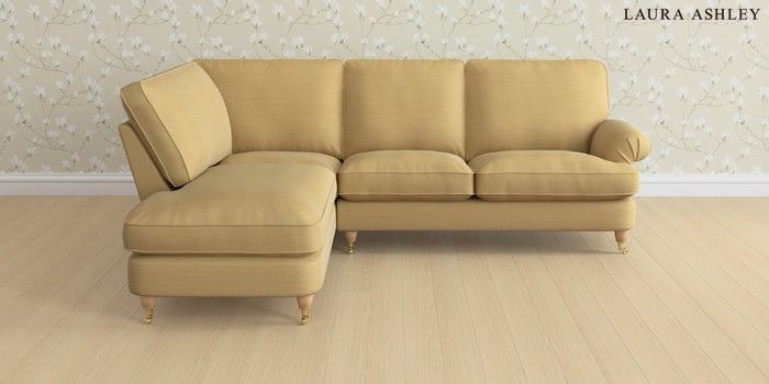 6.12.1 Buy Beaumaris by Laura Ashley Medium Sofa Chaise - Left Hand Kinsham Ochre Yellow Low Brass Castor - Light Oak from the Next UK online shop Click here to use our accessible website