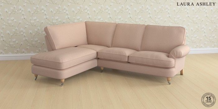 6.12.1 Buy Beaumaris by Laura Ashley Medium Sofa Chaise - Left Hand Melbreak Geo Chalk Pink Low Chrome Castor - Light Oak from the Next UK online shop Click here to use our accessible website