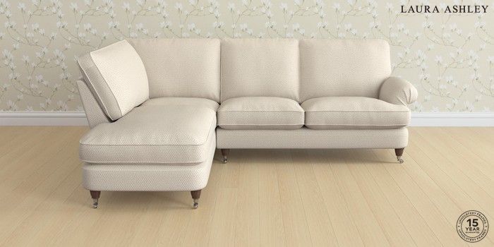 6.12.1 Buy Beaumaris by Laura Ashley Medium Sofa Chaise - Left Hand Melbreak Geo Light Natural Low Chrome Castor - Chestnut from the Next UK online shop Click here to use our accessible website