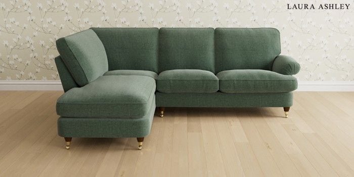6.12.1 Buy Beaumaris by Laura Ashley Medium Sofa Chaise - Left Hand Nantmor Fern Green Low Brass Castor - Teak from the Next UK online shop Click here to use our accessible website