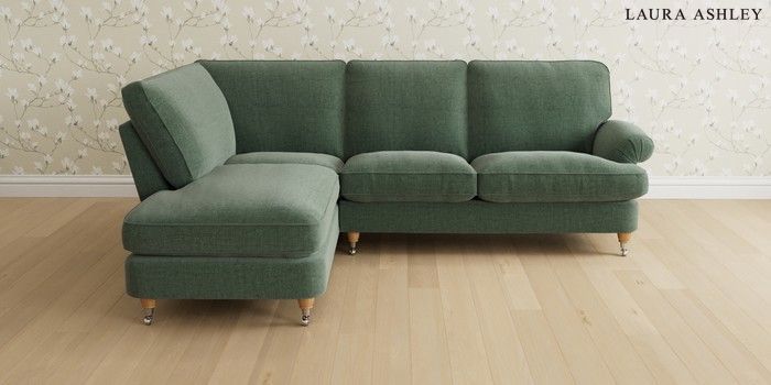 6.12.1 Buy Beaumaris by Laura Ashley Medium Sofa Chaise - Left Hand Nantmor Fern Green Low Chrome Castor - Light Oak from the Next UK online shop Click here to use our accessible website