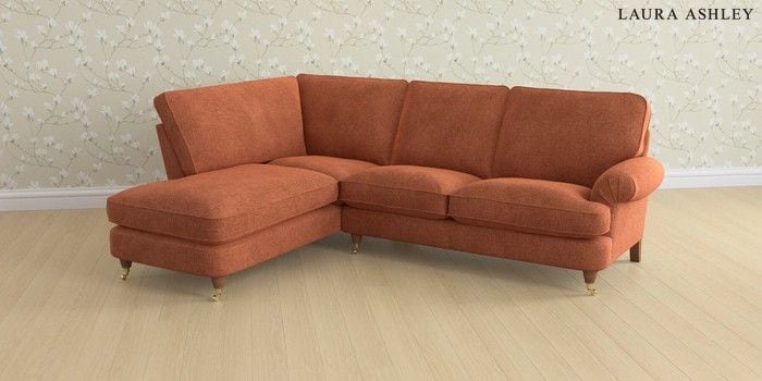 6.12.1 Buy Beaumaris by Laura Ashley Medium Sofa Chaise - Left Hand Nantmor Rust Orange Low Brass Castor - Teak from the Next UK online shop Click here to use our accessible website