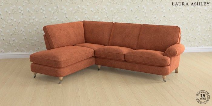 6.12.1 Buy Beaumaris by Laura Ashley Medium Sofa Chaise - Left Hand Nantmor Rust Orange Low Chrome Castor - Light Oak from the Next UK online shop Click here to use our accessible website