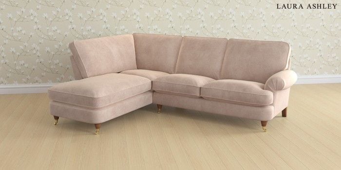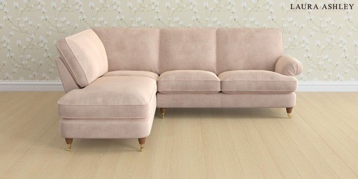 6.12.1 Buy Beaumaris by Laura Ashley Medium Sofa Chaise - Left Hand Orla Chalk Pink Low Brass Castor - Teak from the Next UK online shop Click here to use our accessible website