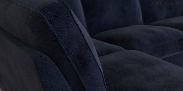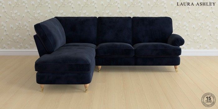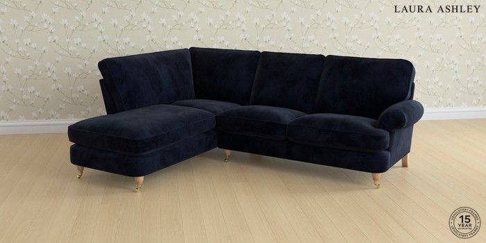 6.12.1 Buy Beaumaris by Laura Ashley Medium Sofa Chaise - Left Hand Orla Midnight Navy Low Brass Castor - Light Oak from the Next UK online shop Click here to use our accessible website