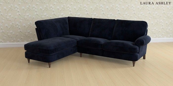 6.12.1 Buy Beaumaris by Laura Ashley Medium Sofa Chaise - Left Hand Orla Midnight Navy Low Turned - Chestnut from the Next UK online shop Click here to use our accessible website