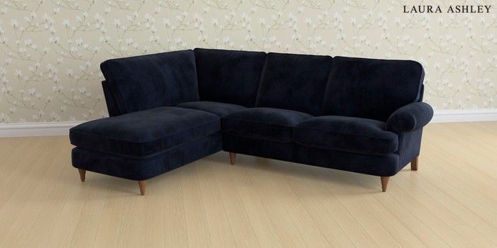 6.12.1 Buy Beaumaris by Laura Ashley Medium Sofa Chaise - Left Hand Orla Midnight Navy Low Turned - Teak from the Next UK online shop Click here to use our accessible website