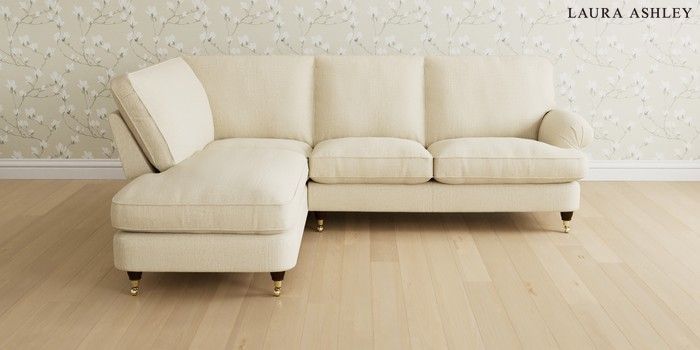 6.12.1 Buy Beaumaris by Laura Ashley Medium Sofa Chaise - Left Hand Orla Oyster Natural Low Brass Castor - Chestnut from the Next UK online shop Click here to use our accessible website