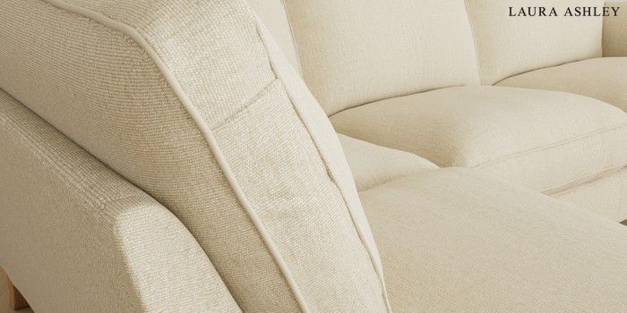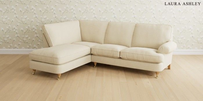 6.12.1 Buy Beaumaris by Laura Ashley Medium Sofa Chaise - Left Hand Orla Oyster Natural Low Brass Castor - Light Oak from the Next UK online shop Click here to use our accessible website