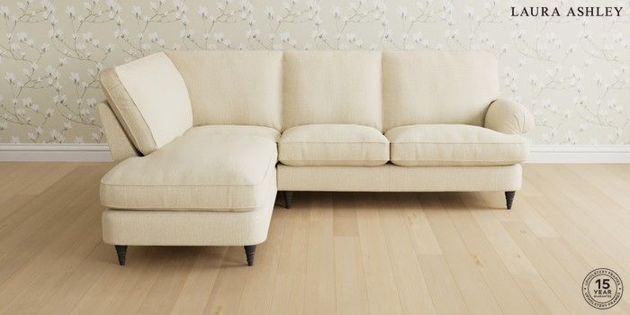 6.12.1 Buy Beaumaris by Laura Ashley Medium Sofa Chaise - Left Hand Orla Oyster Natural Low Turned - Black from the Next UK online shop Click here to use our accessible website