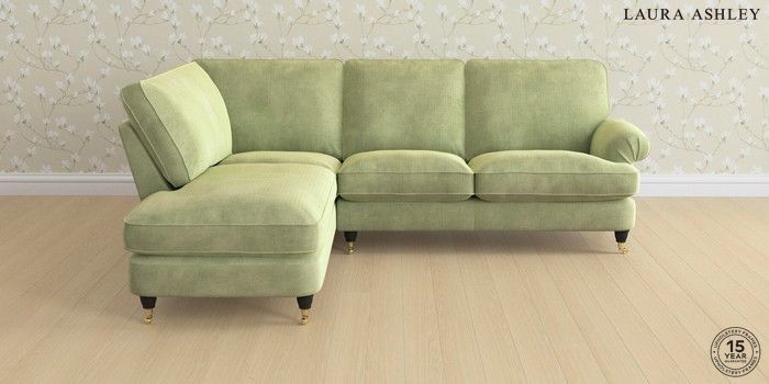6.12.1 Buy Beaumaris by Laura Ashley Medium Sofa Chaise - Left Hand Orla Pale Hedgerow Green Low Brass Castor - Black from the Next UK online shop Click here to use our accessible website
