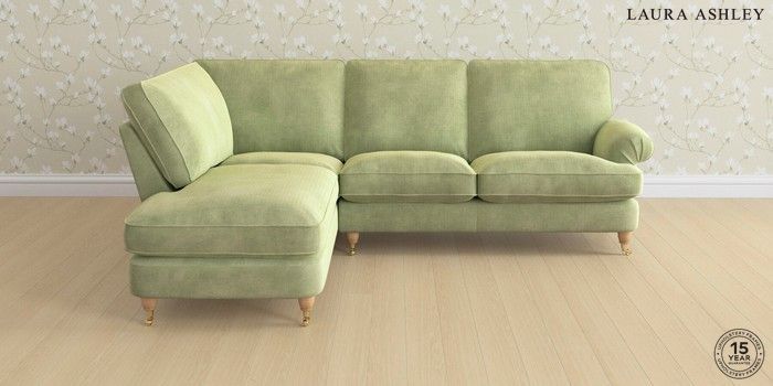6.12.1 Buy Beaumaris by Laura Ashley Medium Sofa Chaise - Left Hand Orla Pale Hedgerow Green Low Brass Castor - Light Oak from the Next UK online shop Click here to use our accessible website