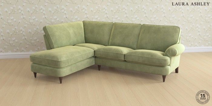 6.12.1 Buy Beaumaris by Laura Ashley Medium Sofa Chaise - Left Hand Orla Pale Hedgerow Green Low Turned - Chestnut from the Next UK online shop Click here to use our accessible website