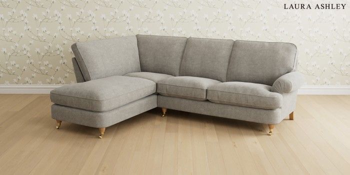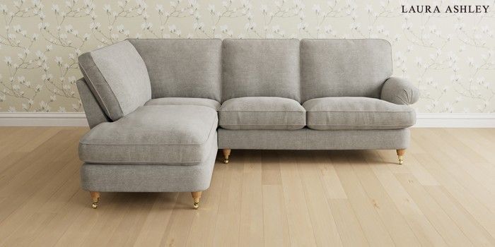6.12.1 Buy Beaumaris by Laura Ashley Medium Sofa Chaise - Left Hand Orla Pale Steel Grey Low Brass Castor - Light Oak from the Next UK online shop Click here to use our accessible website