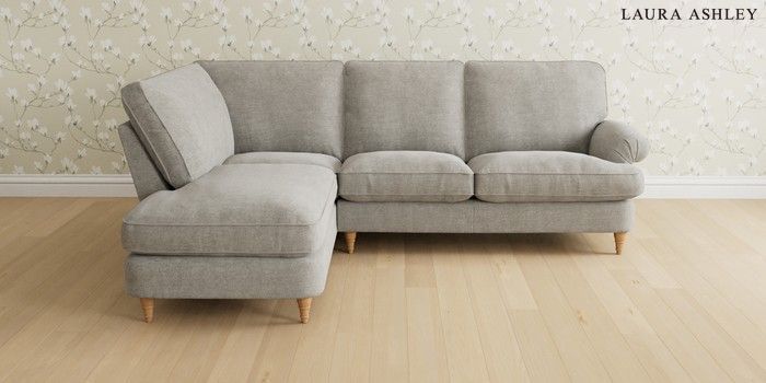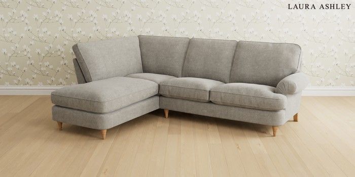 6.12.1 Buy Beaumaris by Laura Ashley Medium Sofa Chaise - Left Hand Orla Pale Steel Grey Low Turned - Light Oak from the Next UK online shop Click here to use our accessible website