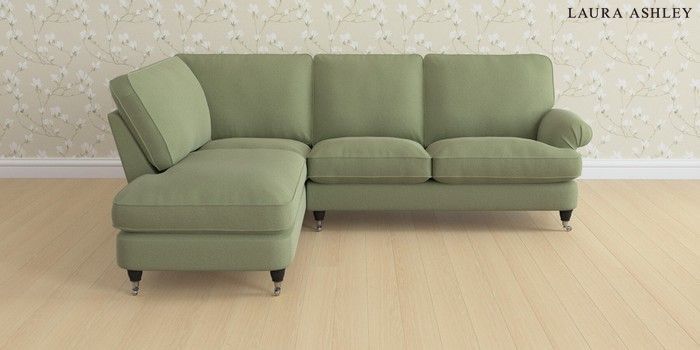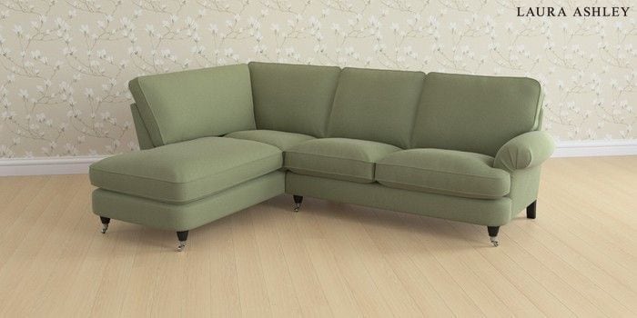 6.12.1 Buy Beaumaris by Laura Ashley Medium Sofa Chaise - Left Hand Peyton Hedgerow Green Low Chrome Castor - Black from the Next UK online shop Click here to use our accessible website