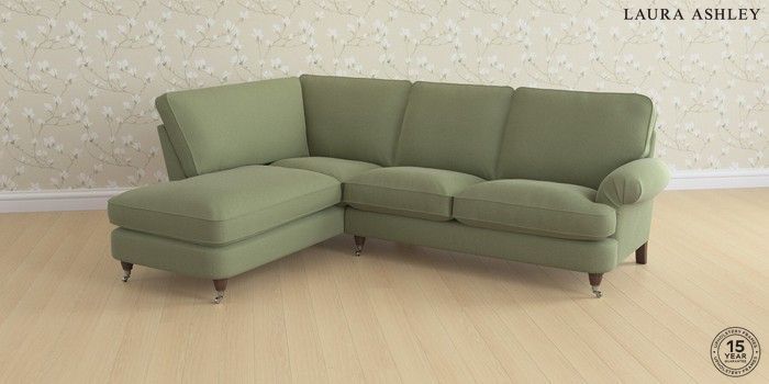 6.12.1 Buy Beaumaris by Laura Ashley Medium Sofa Chaise - Left Hand Peyton Hedgerow Green Low Chrome Castor - Chestnut from the Next UK online shop Click here to use our accessible website