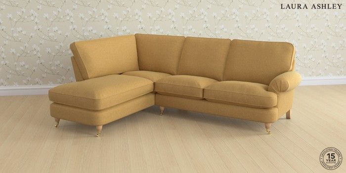 6.12.1 Buy Beaumaris by Laura Ashley Medium Sofa Chaise - Left Hand Peyton Ochre Yellow Low Brass Castor - Light Oak from the Next UK online shop Click here to use our accessible website