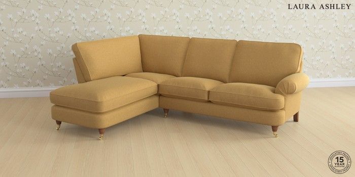 6.12.1 Buy Beaumaris by Laura Ashley Medium Sofa Chaise - Left Hand Peyton Ochre Yellow Low Brass Castor - Teak from the Next UK online shop Click here to use our accessible website