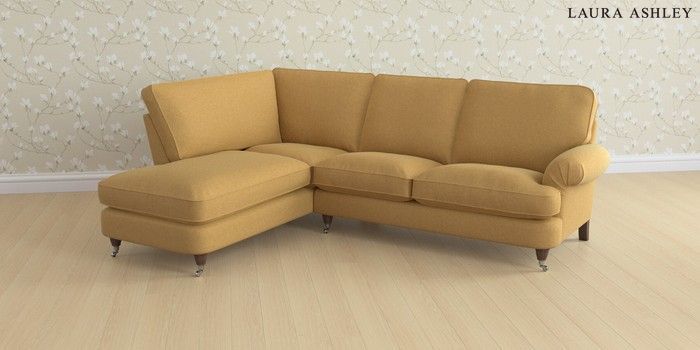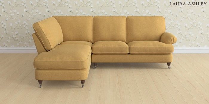 6.12.1 Buy Beaumaris by Laura Ashley Medium Sofa Chaise - Left Hand Peyton Ochre Yellow Low Chrome Castor - Chestnut from the Next UK online shop Click here to use our accessible website