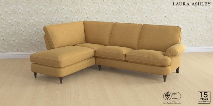 6.12.1 Buy Beaumaris by Laura Ashley Medium Sofa Chaise - Left Hand Peyton Ochre Yellow Low Turned - Chestnut from the Next UK online shop Click here to use our accessible website